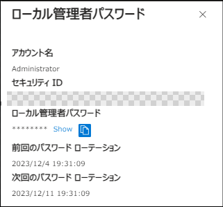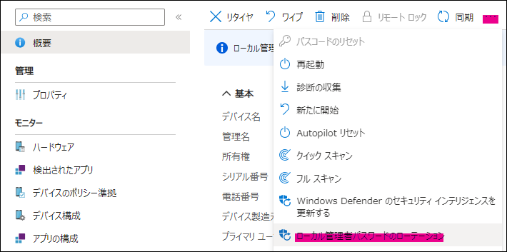 - デバイス>対象のデバイス>ローカル管理者パスワードのローテーション