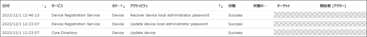 Update device local administrator password:パスワードのローテーションが実行されたことを表すログです