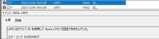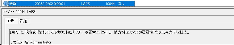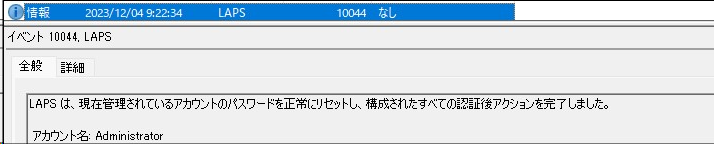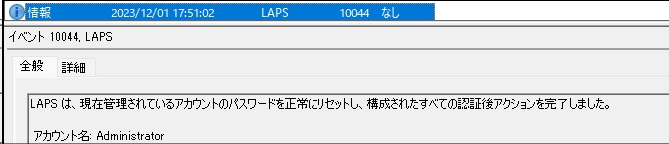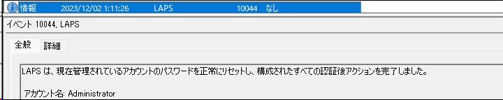 - アプリケーションとサービスログ>Microsoft>Windows>LAPS>Operational