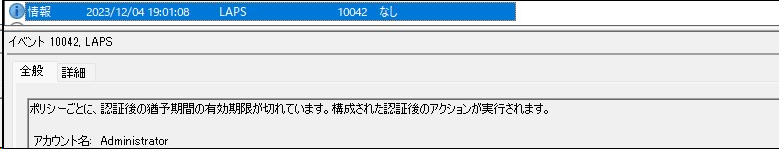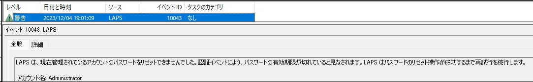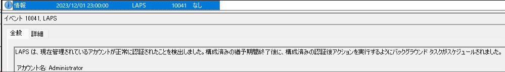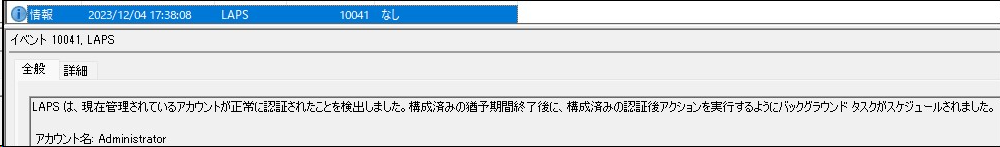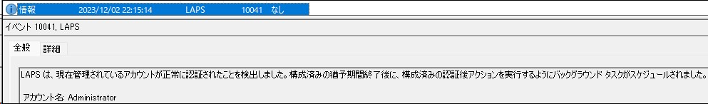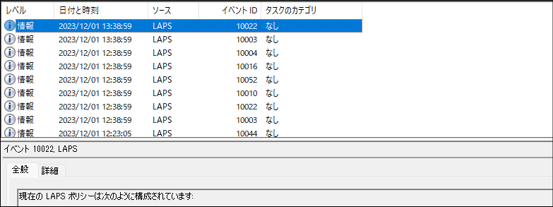 イベントビューアーで確認ができます。管理センターで見るよりも詳細で、LAPSがどう動作しているのか面白いです。